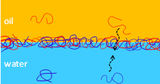 L’un des polymères est solubilisé dans l’eau, l’autre se trouve dans l’huile et lorsque les chaînes se rencontrent à l’interface eau-huile, elles forment des liaisons hydrogène et donc une membrane interfaciale. Dans un article précédent, cette équipe avait montré que lorsque les deux phases eau et huile sont émulsifiées, cette membrane permet de stabiliser des émulsions de gouttelettes d’huile dans l’eau tables sur plusieurs semaines, voire des mois.