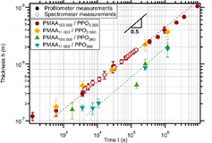 - Figure 2 Croissance des membranes au cours du temps en fonction de la longueur des chaînes polymères