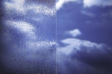Left: normal glass; right: with alternating rain and sunshine, self cleaning glass stays cleaner (and hydrophilic) (Saint-Gobain).TiO2 is known to be photo-catalytic : under solar irradiation, organics adsorbed at the surface are oxidized. This mechanism provides a simple rationale for the self-cleaning properties of TiO2. However, it does not explain why mineral contaminants are eliminated as well. In fact, smaller dust particles should stick all the better as the surface is deprived of organic contaminents... We have demonstrated that UV irradiated TiO2 layers are non-adhesive in the presence of water, thus preventing adhesion of mineral particles : surface forces measurements by Atomic Force Microscopy reveal that after UV irradiation, an additional short range interaction appears. This strongly repulsive force screens the ubiquitous van der Waals attraction and suppresses adhesion.