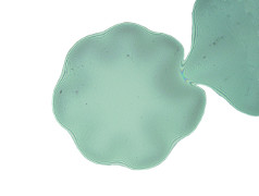 The lobes around this quasi-circular thin film buckle are induced by mode-mix dependent adhesion. |